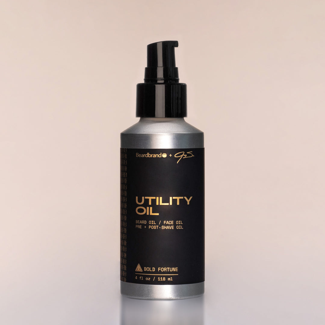 Utility Oil is our award-winning rejuvenating oil for beard, hair, face, and skin. Formulated with natural abyssinian, jojoba, castor, and babassu oils, Utility Oil gives you lightweight, non-greasy hydration wherever you use it. SIZE: 4 fl oz.