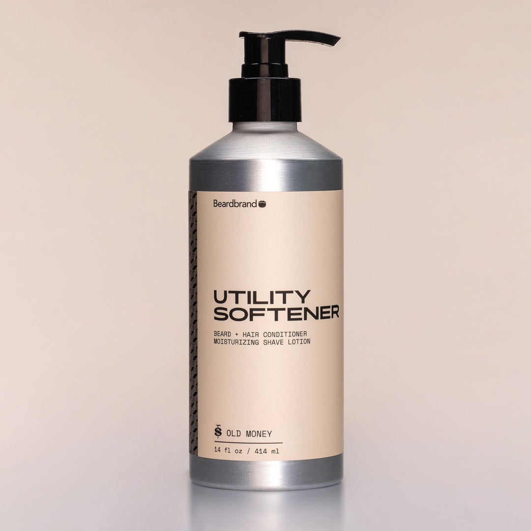 BEARD CONDITIONER: Apply a nickel-sized amount of Utility Softener to your beard, focusing on the hair tips. Bask in the awesome fragrance under your nose while letting it soak in. Rinse. Use Utility Softener on its own or after washing your beard with Utility Wash.