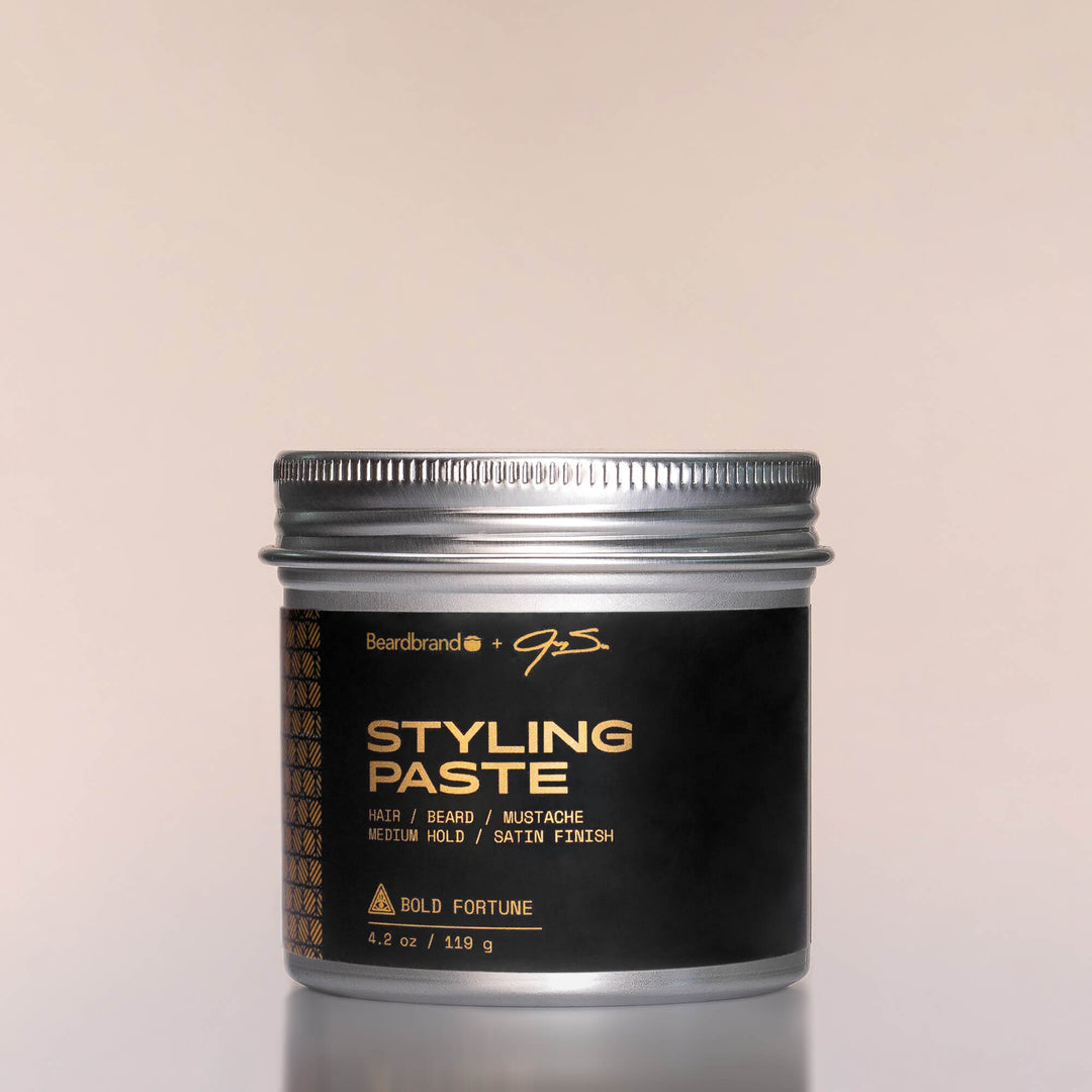 Beardbrand Styling Paste is now made with the original Beardbrand Styling Balm formula that delivers medium hold and a free-flowing, natural look for your beard and head hair. The flexible, satin finish leaves hair touchable without that hard, stiff, and crunchy feeling. SIZE: 4.2 oz.