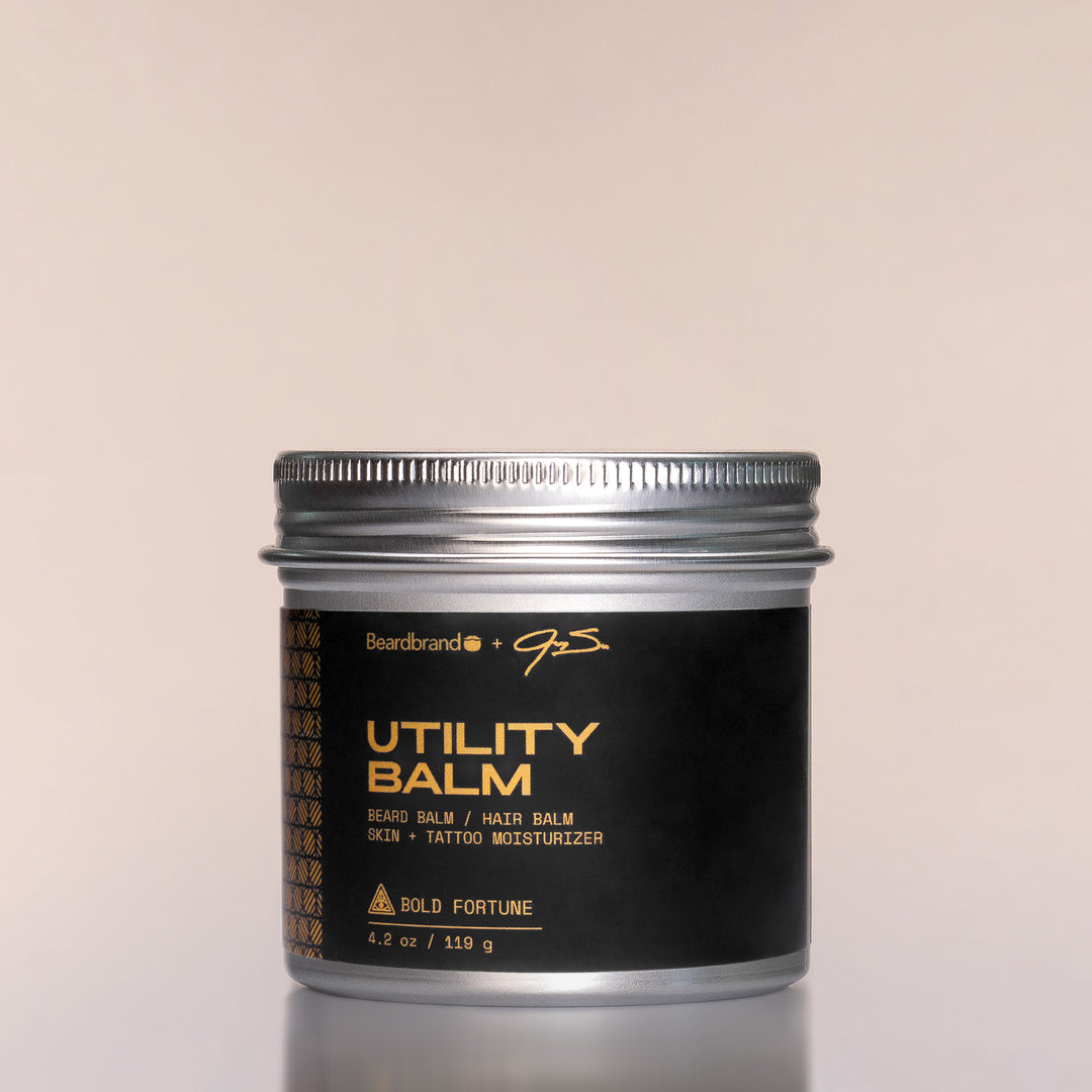 Our original formula Utility Balm. A moisturizing powerhouse made with 3X more natural butters (shea, mango, cocoa) than standard beard balms. This ultra-hydrating beard balm and hair moisturizer also works miracles on dry skin, adds shine and vigor to fully healed tattoos, and so much more. SIZE: 4.2 oz.