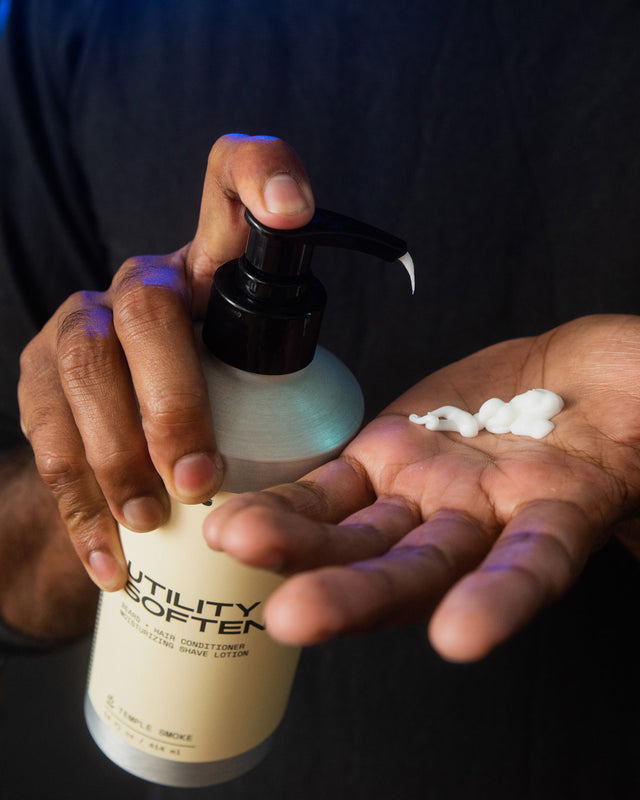 BEARD CONDITIONER: Apply a nickel-sized amount of Utility Softener to your beard, focusing on the hair tips. Bask in the awesome fragrance under your nose while letting it soak in. Rinse. Use Utility Softener on its own or after washing your beard with Utility Wash.